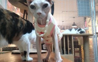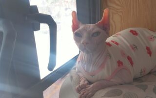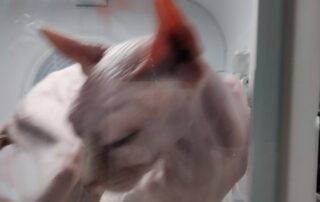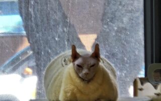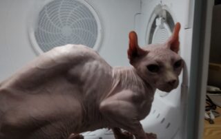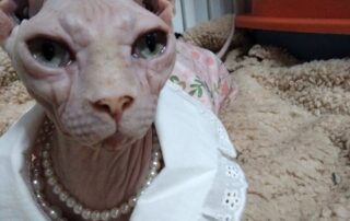 到了地方后,我四处打听这只猫可能藏身的位置,并播放了各种猫叫声试图吸引她,但毫无效果。这个地方比较偏僻,人们对这种无毛猫并不了解,甚至称她为“小怪物”,觉得她的长相怪异又可怕。如果知道她值钱,估计早就被人捉去卖掉了。据附近的人说,她经常出现在一家卖二手家具的店附近。我不死心,决定守在那里,想着既然来了,无论如何也不能空手而归。