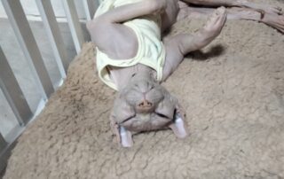 说实话,第一次见到她时,我对她的长相和那油腻腻的手感还是有些害怕的。但为了帮助她恢复健康,我壮着胆子给她洗了个澡。洗完才发现,她瘦得像一副骷髅架子,体重竟然还不到5斤。每天我都会仔细清理她的身体,确保她的皮肤干净健康。随着时间推移,我也逐渐适应了她的样子,开始感受到她的独特魅力。