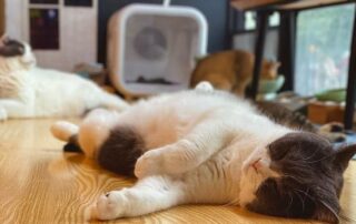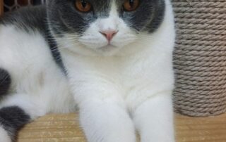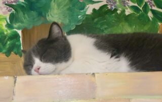 他是肥妹的大儿子,外形更像妈妈一些,身上以灰色为主,后背还有一块独特的白色图案,形状宛如一片叶子,这让他的外貌显得格外特别。刚出生的时候,因为眼睛还没睁开,我们一度以为他是一只小母猫。直到后来带他去打疫苗时,医生才告诉我们,原来他是一个小男生!他的性格特别温和,呆萌中透着一股让人无法抗拒的可爱劲儿。无论是客人的抚摸还是偶尔的小玩笑,他总是用一种憨厚的方式回应,从不发脾气,让人越看越喜欢。