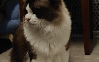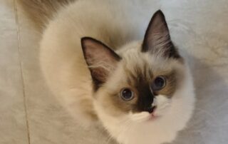 她是茉莉小姐的第二只宝宝,也是唯一的女生。在她出生的那一天,恰逢电影版《灌篮高手》上映,因此我们给她起了一个充满纪念意义的名字——晴子小姐。有趣的是,她因为鼻子上的一小块黑色斑点被我们“自留”了下来,成为了家里的一员。