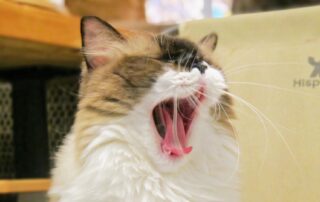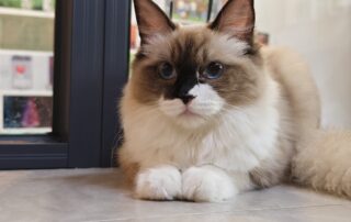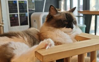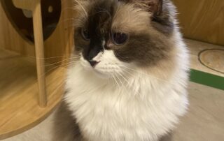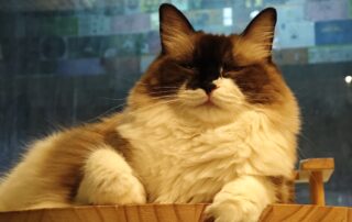 晴子小姐如今最大的特点就是馋嘴。只要听到有人打开零食袋或餐具碰撞的声音,她就会立刻跳到家里最高的地方,大声叫唤,仿佛在提醒我们:“别忘了给我也分一点!”这种可爱的举动总是让人忍俊不禁。虽然她偶尔会有点任性,但正是这些独特的性格特点,让她成为了店里最讨人喜欢的存在。