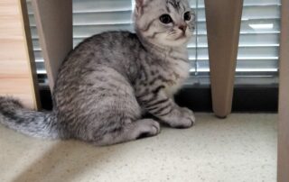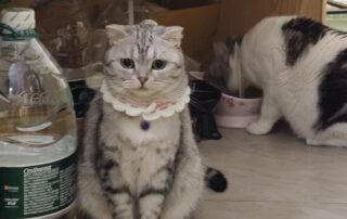 她是我一眼就相中的猫,那双微微折起的耳朵让她看起来格外独特,仿佛自带一种与众不同的灵气。领养时,对方提出必须绝育的要求,这对我来说是非常自然的事情。然而,当我兴冲冲地把她接回家时,却得知她生病了——患的是比较难治的三毛滴虫。这种病不仅治疗周期长,而且用药还带有毒性,每次喂药都得戴着手套小心翼翼地操作,十四天为一个疗程,期间还需要定期带她去医院做粪检。尽管连续进行了四个疗程,她的病情仍未完全痊愈,这让我不禁有些担忧。