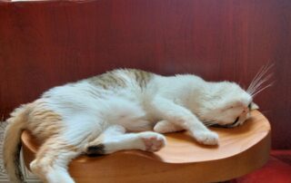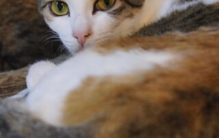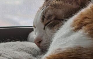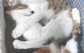 后来,这只小猫得到了我家另一只猫咪“十二”的悉心照顾。在“十二”的带领下,家里的其他猫咪也都对她格外友好,尤其是她自己,也成为了家里最黏同伴的一只猫。无论白天还是夜晚,她总是喜欢硬挤着别的猫一起睡觉,哪怕对方不情愿,她也能找到缝隙钻进去,真是让人哭笑不得。